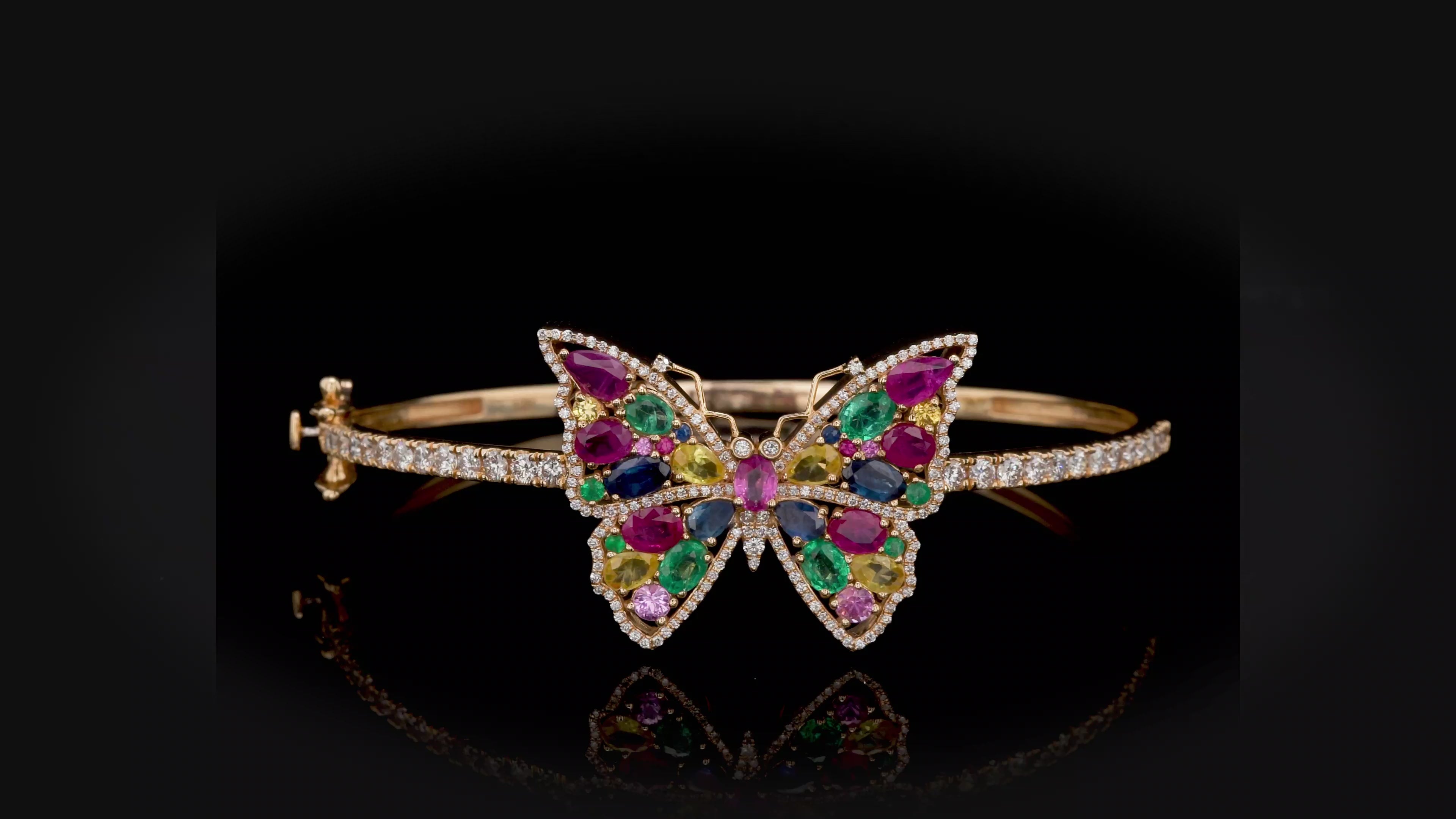Elegant Butterfly Diamond & Multicolour Gemstone Bangle