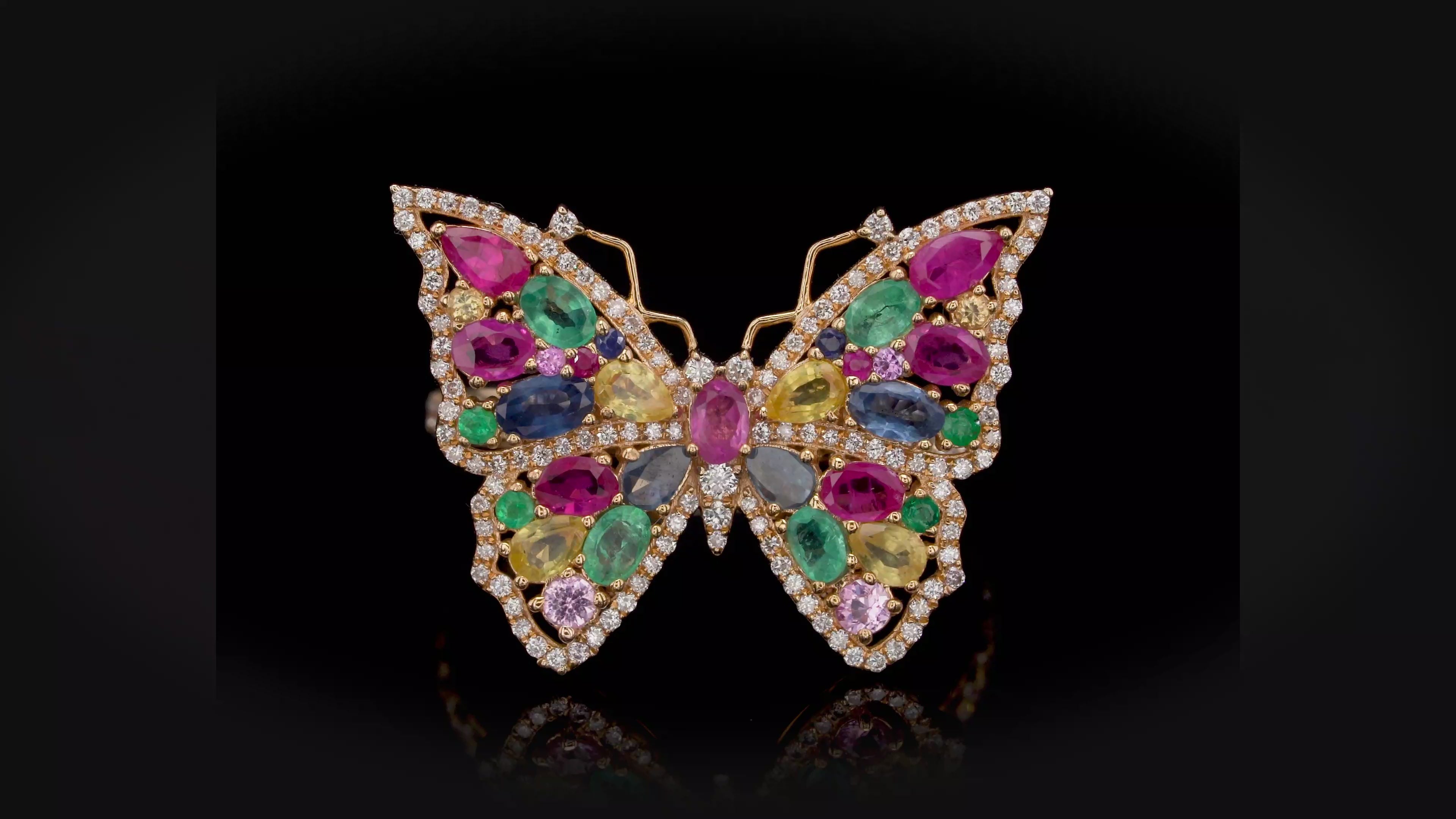 Elegant Butterfly Diamond & Multicolour Gemstone Ring
