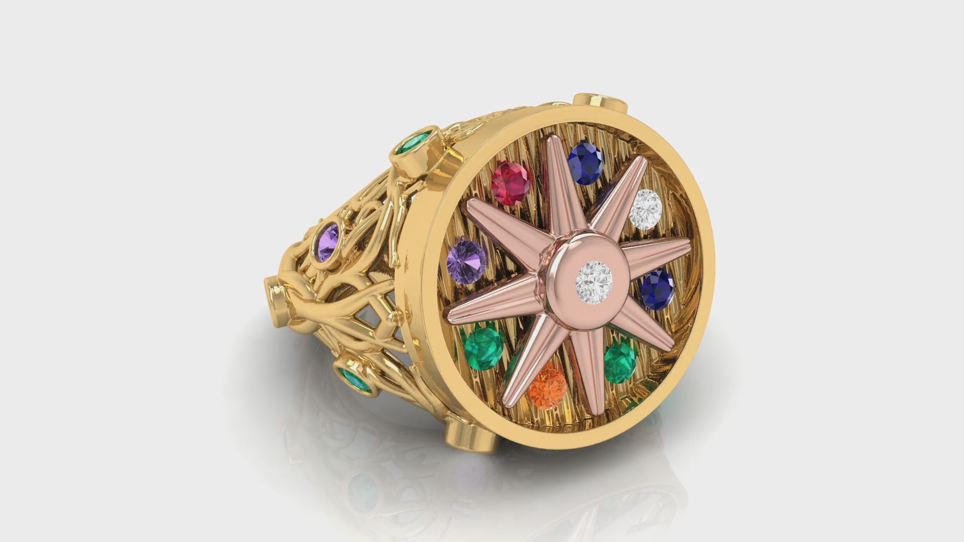 - Diamond Cut Centre With Planets Represented By Precious Gemstones